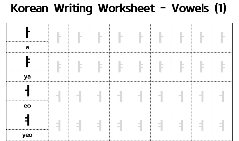 You can print it and practice writing Korean basic vowels with this worksheet.